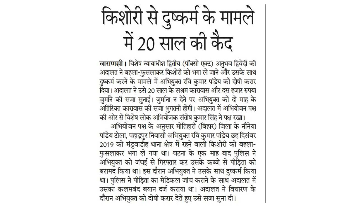 twenty years impresonment against child rape