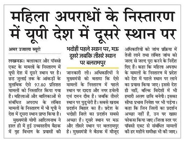 Mahila apradhon ke nistaran me desh me doosra sthan