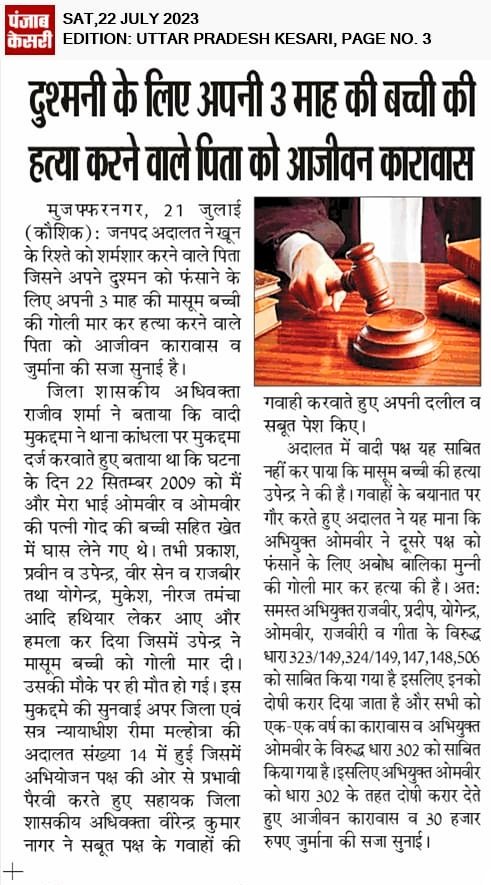 bacchi ki hatya karne wale pita ko karavas
